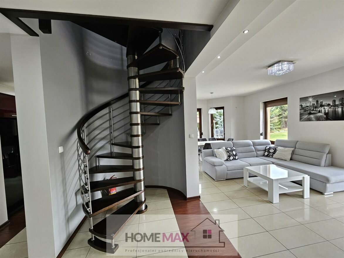 Projekt domu gwarantuje komfortowe i wygodne życie jego mieszkańcom. Dom oraz ogród jest bardzo zadbany i na co dzień utrzymywany w nienagannym stanie technicznym i wizualnym. Otoczenie sprzyja oderwaniu się od miejskiego zgiełku, co pozwala na pełne korzystanie z uroków przyrody. Posiadłość jest idealna dla osób wymagających, ceniących ciszę, spokój i kontakt z naturą, a także wygodę i elegancję. Dom o powierzchni użytkowej ok. 210m 2 , posiada również dwustanowiskowy garaż.